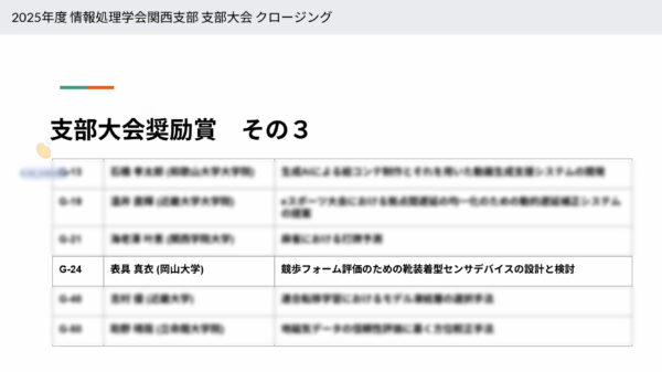 表具真衣さん(松田研B4)が2025年度情報処理学会関西支部支部大会にて「支部大会奨励賞」を受賞しました